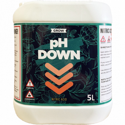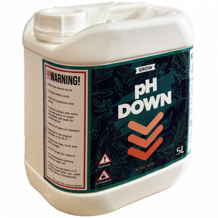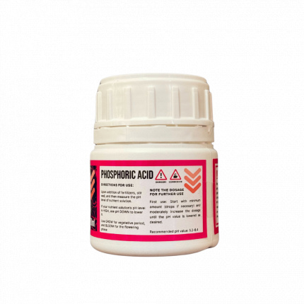 Snažan korektor za precizno snižavanje pH vrednosti rastvora za zalivanje. Idealno za vegetativnu fazu rasta, pH Minus Grow (38% azotna kiselina) podržava optimalno usvajanje minerala, posebno azota, za zdrav razvoj listova i stabla. Preporučeni pH opseg: 6.0–6.5 (zemlja/kokos) ili 5.8–6.2 (hidroponika). Dodavati pažljivo uz merenje digitalnim pH meračem.