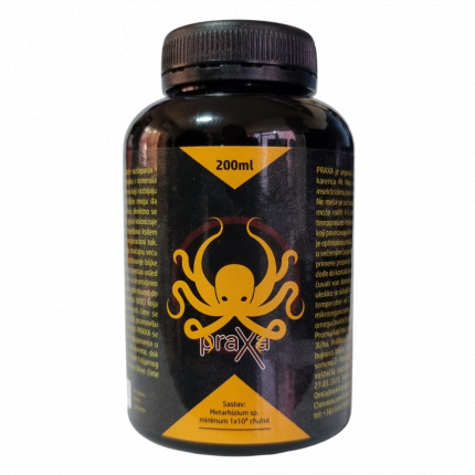Praxa je 100% organski mikrobiološki stimulator na bazi gljive Metarhizium sp. koja ulazi u simbiozu sa biljkama. Olakšava biljkama usvajanje hranljivih materija i vode; Poboljšava usvajanje CO2 i proces fotosinteze; Povećava otpornost na stres nastao usled suše i visokog saliniteta; Usporava širenje patogena; Ubrzava oporavak biljke...