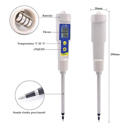 Soil Test ™ – HI98331 je robustan i pouzdan tester električne provodljivosti koji staje u džep i pruža brza i tačna očitavanja. Soil Test™ Tester – HI98331 poseduje sondu od nerđajućeg čelika za direktna merenja električne provodljivosti u zemlji. Sa kompaktnom veličinom, radom sa jednim dugmetom i automatskom kalibracijom, Soil Test je odličan izbor za merenje električne provodljivosti direktne u zemljištu.