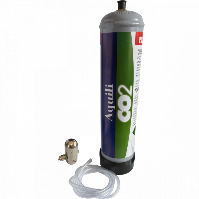 Oživite akvarijum s malim CO2 sistemom. Reduktor (2-2,5 bara) i boca od 600 g pružaju stabilan CO2 za biljke. U paketu je i providno crevo. Proširivo punjivim bocama.