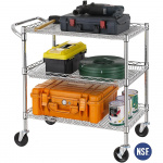 Izrađena od visokokvalitetnog hromiranog čelika, ova kolica su čvrsta, izdržljiva i otporna na rđu, pružajući dugotrajnu upotrebu. Tri nivoa omogućavaju raspodelu tereta na više polica, dok točkovi obezbeđuju laku mobilnost i upravljanje, čak i u uskim prostorima. Kolica su dizajnirana tako da svaka polica može da izdrži značajnu težinu, što ih čini pogodnim za prenošenje težih predmeta.