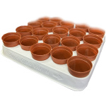 Mini saksija za kaktuse Ø 5,5 cm, terakota boja Plastična, sa rupama za drenážu. Idealna za male kaktuse i sukulente. Tačno staje u kontejner sa 20 mesta (4×5). Čvrsta, ne bledi na suncu.