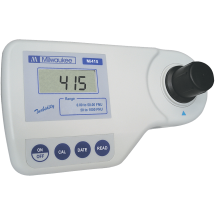 Turbidimetar Mi 415 je merni instrument kompanjie Milwaukee, kojim se vrši merenje nivoa mutnoće kod vode i različitih vrsta rastvora. Mutnoća se odnosi na koncentraciju nerastvorenih i suspendovanih čestica u tečnostima, i predstavlja meru prozirnosti uzorka. Ovaj merač poseduje dva merna opsega: od 0,00 do 50,00 FNU i od 50,00 – 1000,00 FNU, prilagođavajući se i najviše zamućenom stanju sa kojim se možete susresti. Uređaj se isporučuje u tvrdoj kutijici za nošenje, zajedno sa reagensima.