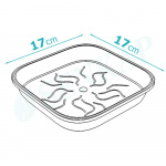 Ovaj podmetač je originalni podmetač za četvrtastu saksiju 7l 20cm (šifra artikla 3884), ali može da posluži kao podmetač za saksije 5,5L PF. Može da se koristi i sa drugim saksijama čije dno nije veće od 14x14cm.