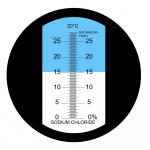Skala je postavljena tako da se na njoj direktno očitava ugao prelamanja svetlosti (refrakcije) u vidu tamnog i svetlog polja. Presek između ova dva polja predstavlja koncentraciju solu izraženu u procentima (%) NaCl;