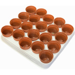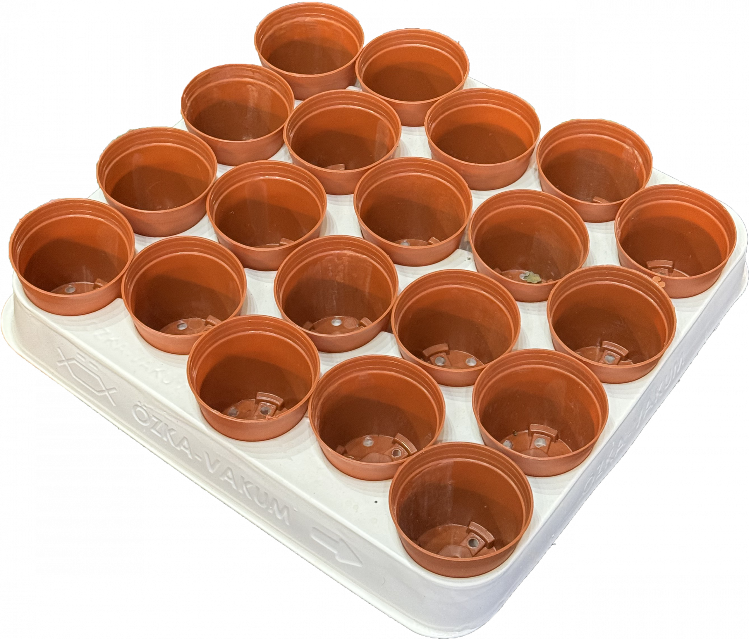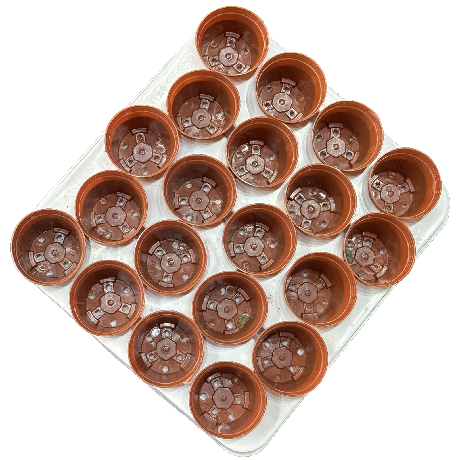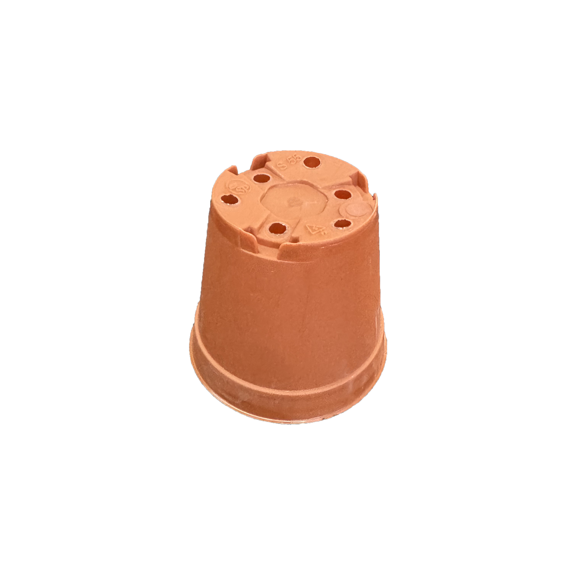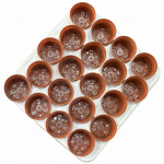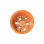 Mini saksija za kaktuse i sukulente – terakota boja, 5,5 cm Idealna okrugla plastična saksijica u toploj terakota boji, dimenzija Ø 5,5 cm (gornji prečnik), visina 5 cm. Posebno dizajnirana za male kaktuse, sukulente i presadnice. Savšeno se uklapa u standardni kontejner / gajbicu sa 20 mesta (raspored 4 × 5), tako da možete lako transportovati i izlagati 20 biljčica odjednom. Poseduje odvodne rupe na dnu za pravilnu drenažu. Lagana, čvrsta i otporna na sunce – ne bledi.