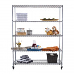 Ovaj set hromiranih žičanih polica dimenzija 120 cm x 53 cm x 180cm predstavlja idealno rešenje za organizaciju i skladištenje u različitim prostorima. Police sa 5 nivoa omogućavaju dovoljno prostora za odlaganje različitih predmeta – od kancelarijskog materijala, kućnih aparata, alata, do potrepština u garažama, radionicama i magacinima. Nosivost 250kg po polici.